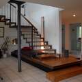 Umbau einer Villa in Überlingen am Bodensee. Die neue Treppenerschließung wurde in den Wohn- bereich integriert und lässt eine Großzügigkeit entstehen, die in diesem Haus aus den 30er Jahren fast nicht denkbar war