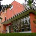 Die kubische Gestaltung mit Flachdächern ermöglichte die Einbeziehung des Außenraums in alle Geschosse. Jede der 3 Etagen hat eine Terrasse.