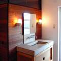 Zentimeter vor der Saunawand als Türchen montiert.