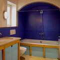 Die Wände in diesem Bad sind nicht gefliest, sondern