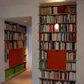 Die Regalböden sind scheinbar in die Wände ein- geschoben und werden so Bestandteil der Architektur. Die vordere Nische wurde erst für das Regal aus- gebildet.